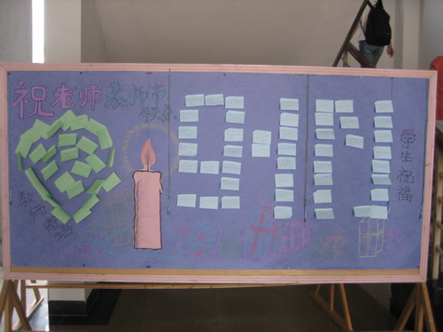 各班班长代表全体同学在第一时间给每位教师送上鲜花,学院通过海报、黑板报、宣传栏等最简单的方式表达学生最朴素的祝福。“感谢老师的辛勤教导!”、“老师,您辛苦了!”等等各类传递爱意,表达真挚祝福的话语出现在学院宣传栏上。据悉,不到中午,满满的一宣传栏变成了祝福的海洋。