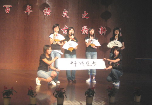 “百年语文”除“趣味语文”、“鹿鸣讲坛”、“书画大赛”外的经典活动和压轴活动。此次晚会虽然是以“古”为基础却是处处透着新意。全新的活动环节:贯通古今,穿越时空;全新的演绎方式:琴棋书画,诗词歌赋;全新的评判标准:老师评委与大众评委相结合,大众评委更占了40%的比例,更加体现观众的意愿。来自各学院的精英在舞台上用心演绎他们心中的别样古韵。