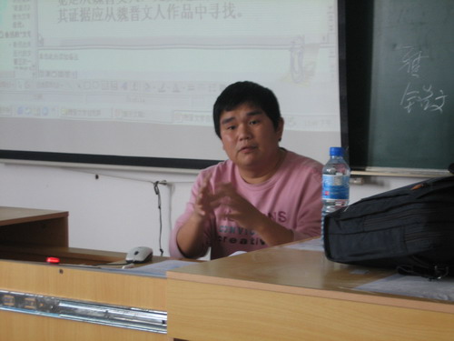4月20日下午1点半,在北校区I-406教室举行了由苏勇强博士主讲的题为“魏晋文学自觉辨”的讲座。