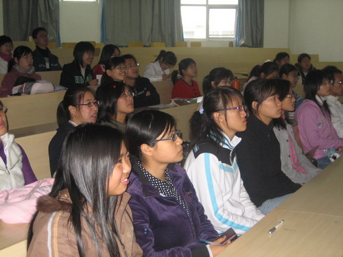 志愿者服务中心的主任丁一民同学与同学们进行了有关06年温大西部社会实践活动的交流。