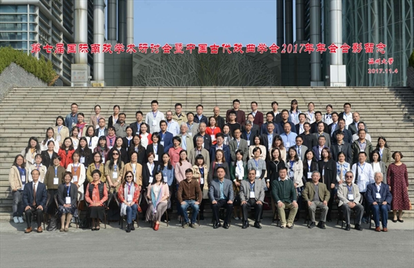 向来宾致以诚挚欢迎。中国人民大学朱万曙教授、日本早稻田大学冈崎由美教授、台湾嘉义大学汪天成教授、台湾成功大学施德玉教授、台湾东吴大学罗丽容教授、澳大利亚悉尼大学石峻山博士等来自海内外80余位戏曲研究专家莅临研讨会。