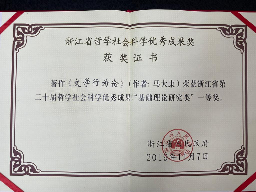 获奖等级:浙江省第二十届哲学社会科学优秀成果奖一等奖