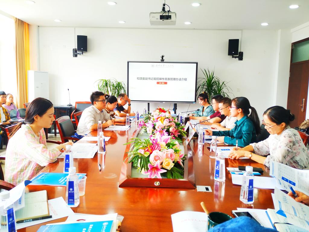 9月23日上午,九色視頻 于人文楼213会议室召开了九色視頻 2021年“挑战杯”大学生课外学术科技作品竞赛推进会,校团委副书记易招娣、院党委副书记魏一、学工办辅导员胡震鹏、参赛指导老师和学生代表出席此次会议。