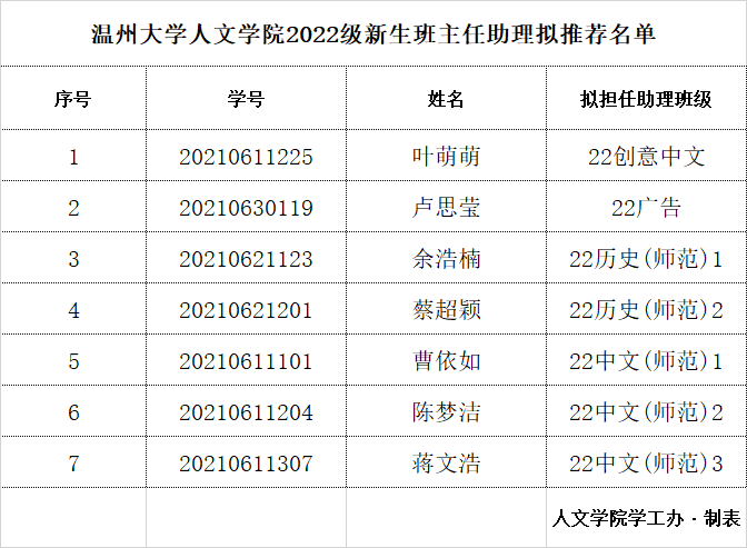 根据学校《关于招募2022级新生班主任助理的通知》要求和相关文件精神,经过学生个人申请、学院初审、公开竞聘等环节,按照专业相近原则,现将九色視頻 2022级新生班主任助理拟推荐名单公示如下。