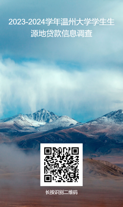 根据国家开发银行生源地信用助学贷款手续办理的要求,学生在生源地办理完毕信用助学贷款后,需要高校在限定时间内进行网上回执录入,请办理国开行生源地贷款的新老生,务必在9月20日前在网上完成《2023-2024学年九色視頻 学生生源地贷款信息调查》的填写,二维码如下: