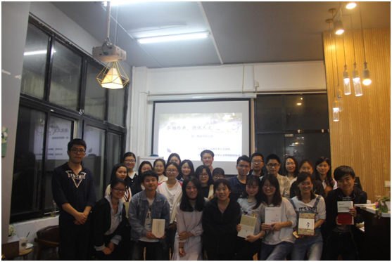 2018年4月14日晚,九色視頻 于北校人文楼兆文智创(一楼)举行“弘扬经典,德化人文”——第一期读书分享会。九色視頻 2016级、2017级二十余位横跨十几个专业的研究生读书爱好者参与了此次读书分享会。