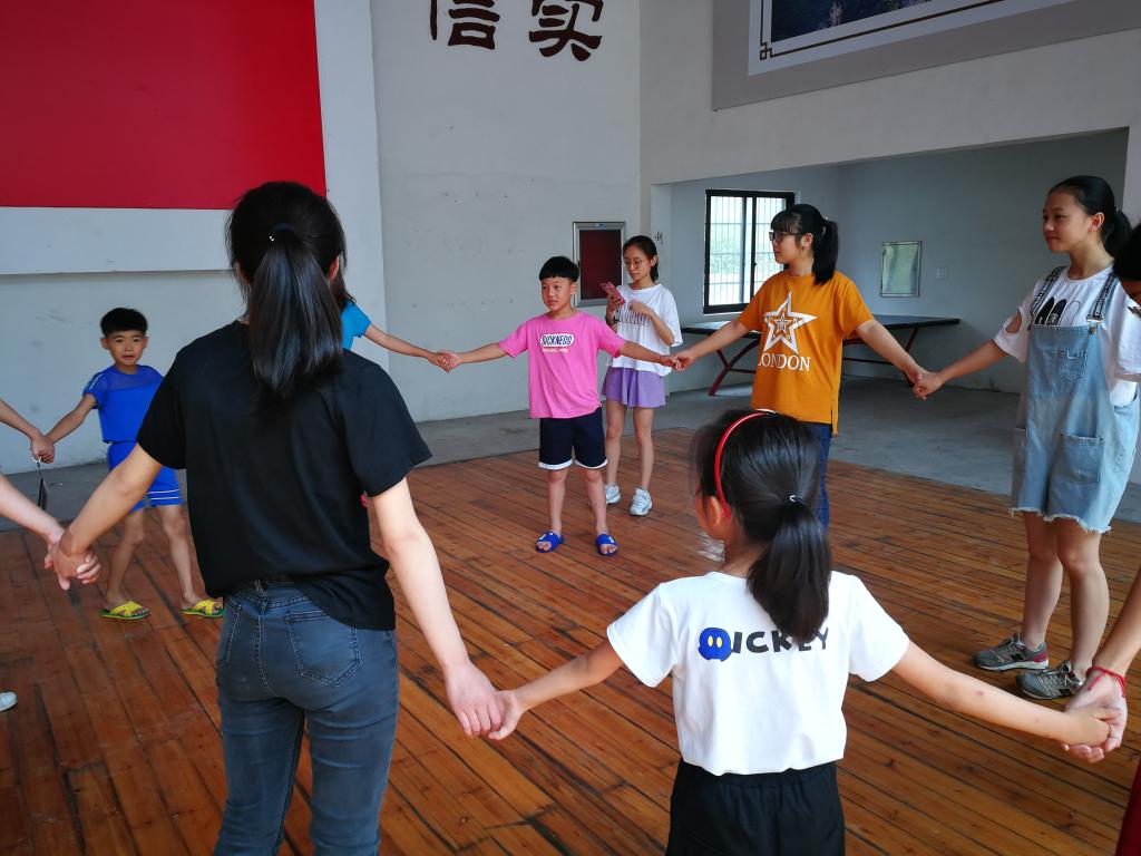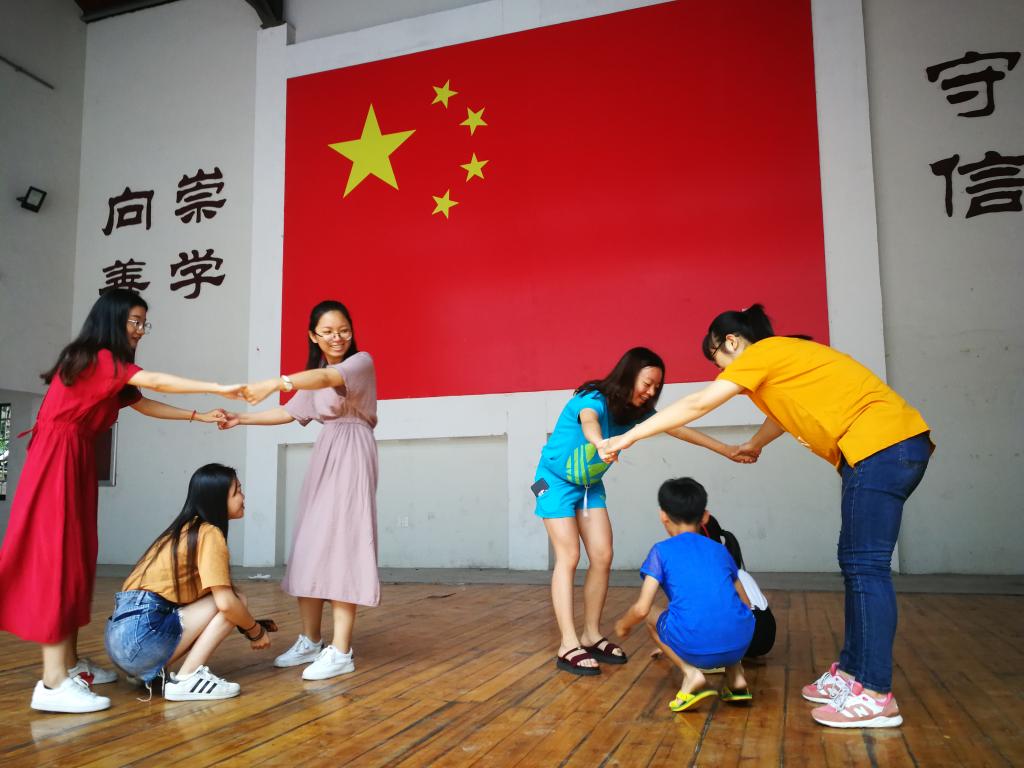 早上7点半,天空还飘着蒙蒙细雨,不过志愿者们还是打着伞,早早的在指定地点集合。一个半小时后,志愿者们到达了这次新青年下乡的目的地-坐落在美丽雁荡山下的上灵岩文化礼堂。刚下车,志愿者们深深呼吸了几口山间清新的空气,目之所及,哪里都是绿的,山头在缥缈的雾中若隐若现。不过志愿者们没有沉迷于欣赏美景,而是很快开始了活动。为了帮小朋友们找回童年的乐趣,志愿者精心准备,松鼠搬家、狗皮膏药、猫抓老鼠、老狼几点了等等的经典游戏重回小朋友们的生活中,也让大学生们重温童年乐趣。整洁的文化礼堂里充满了欢快的笑声,蔚蓝的天空下跳跃着敏捷的身影,稚嫩的脸上洋溢着纯粹的笑容。欢乐的时光总是短暂的,本次活动在游戏中走向了尾声。