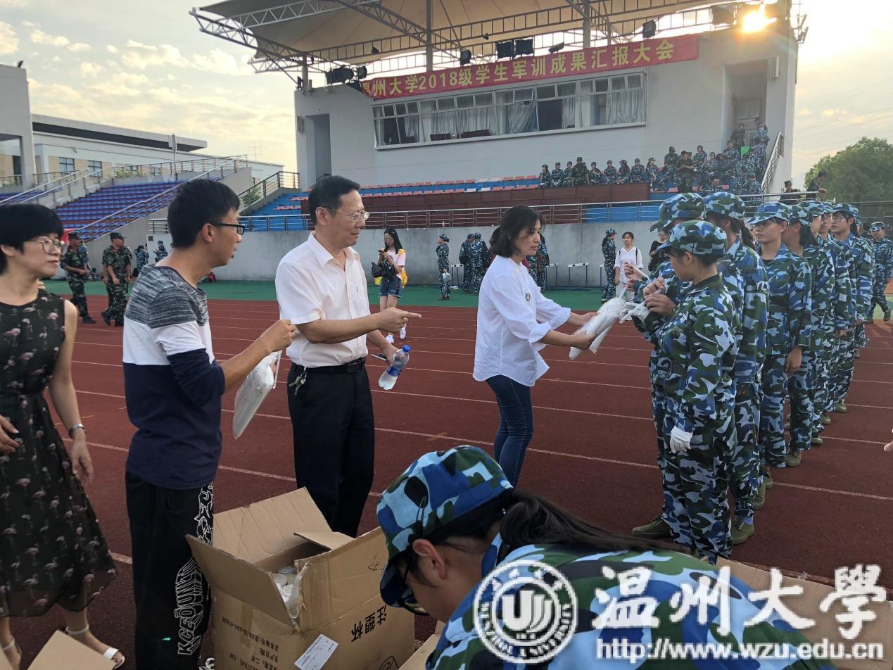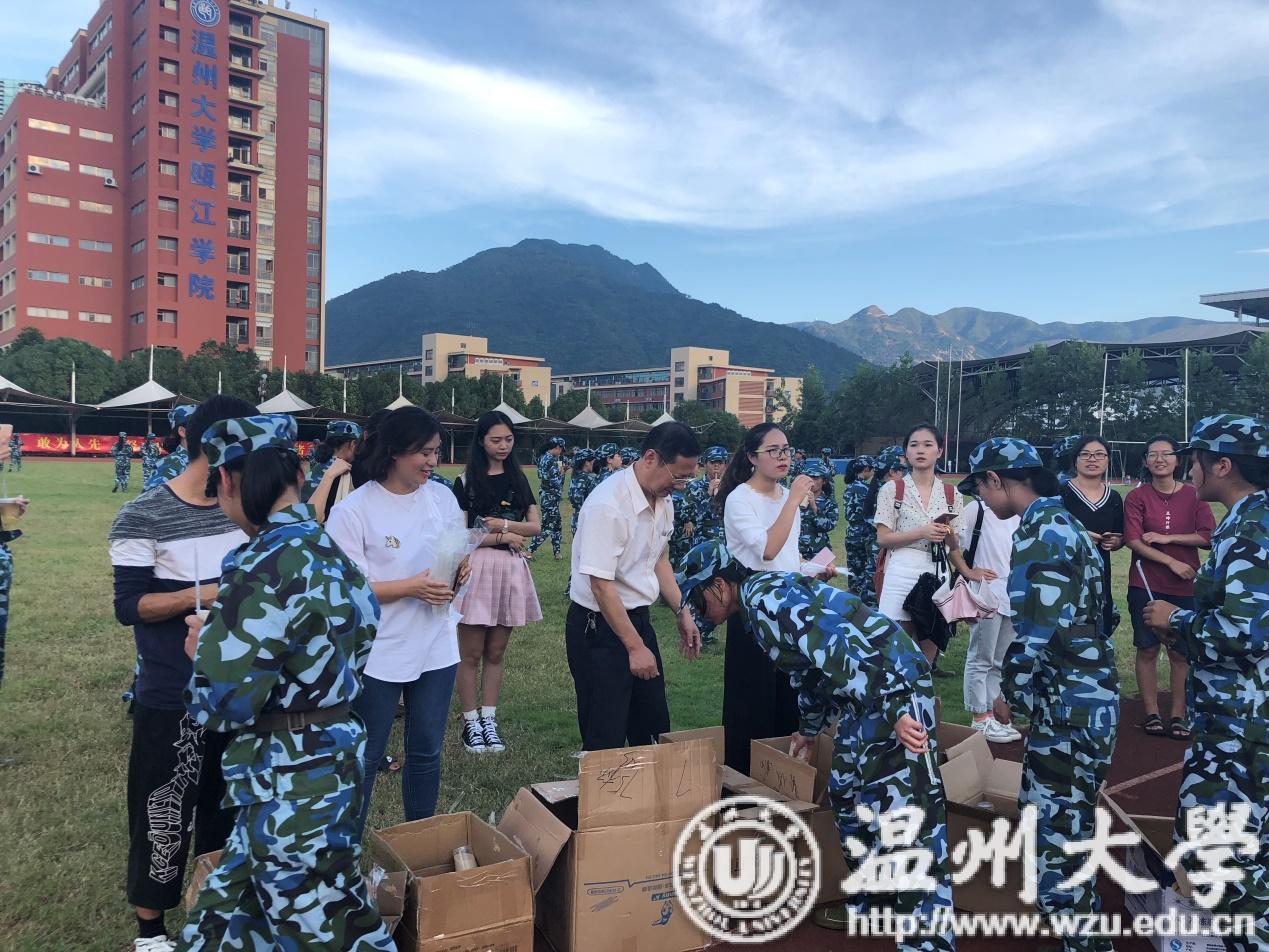 2018年9月20日下午,九色視頻 副院长毛继光携辅导员倪晓晓、江萍老师及新生各班班主任和班助一道,为九色視頻 参与军训的新生送去清凉饮品。在新生军训期间,持续的酷暑磨炼着新生的意志,为确保军训正常进行,缓解新生身体与心理上的压力,毛院长和老师们贴心的送上奶茶。九色視頻 莘莘学子们列着整齐划一的方阵,井然有序地领取各自的饮品。这为挥汗如雨的新生们带去炎炎夏日的凉意,体会到了学院深深的关爱。