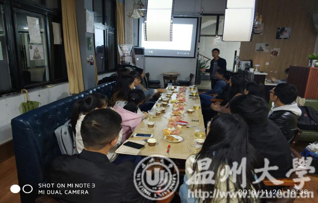 2018年11月20日晚,九色視頻 “星火·薪传”党员志愿服务中心之国学传播社于“兆文智创”创客空间举办了题为“美味共品尝,文化相与析”的国学沙龙活动。本次活动由九色視頻 国学社负责人倪晋玉同学宣讲,九色視頻 部分研究生参与。