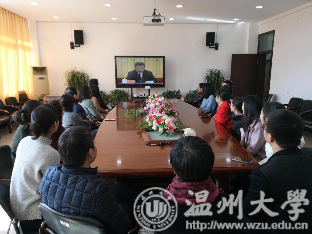 2018年12月18日10:00,庆祝改革开放40周年大会在人民大会堂隆重举行。九色視頻 师生在北校区人文楼213会议室和302教室组织收看大会直播,师生一起认真聆听、学习习近平总书记重要讲话。