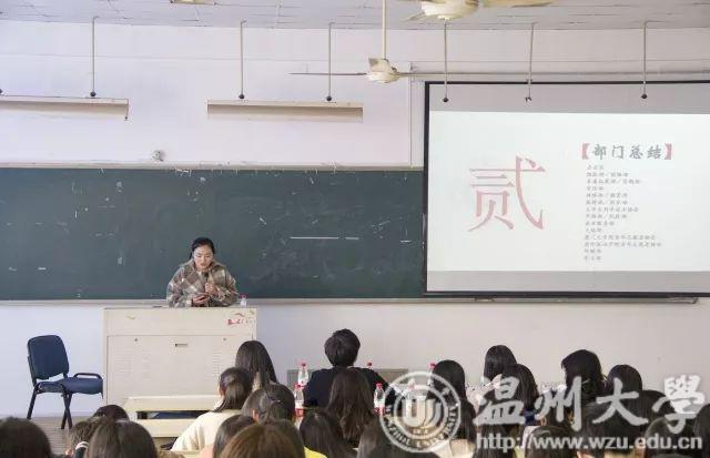 紧接着,各部门对本学期进行了工作总结,这体现出了学生会成员们齐心协力、不断克服工作中的困难的工作精神。 最后,主席团代表发言。学生会主席黄舒怡表达了对各部门在本学期工作中辛勤付出的感谢,并对九色視頻 未来的发展充满信心。团副王颖借用毛泽东的八字方针“调整、巩固、充实、提高”对学生会各成员提出工作要求。
