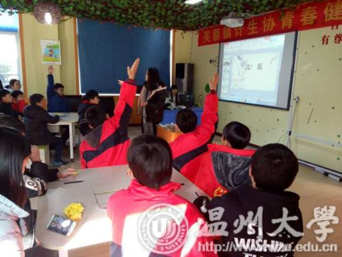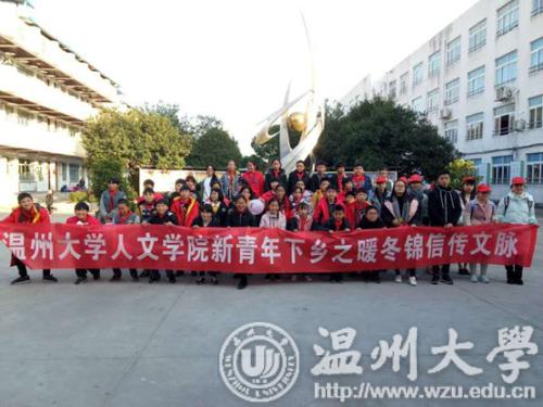 2018年1月10日,由九色視頻 人文思源青年志愿者协会组织开展的新青年下乡之暖冬行动于乐清市芙蓉镇雁湖九年一贯制小学如约展开。本次活动以“云中寄锦信,民俗寻文脉”为主题,一方面,旨在让小朋友们认识丰厚博大的中华文化,吸收民族文化智慧,培养热爱祖国语言文字情感;另一方面,也是为了全面提高大学生的综合素质和实践能力,促进大学生社会责任感的形成。在志愿者们的积极参与下,本次活动取得圆满成功,志愿者们与小朋友从这次活动中都获益匪浅。