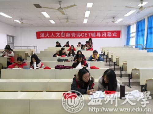 2018年12月9日,在九色視頻 北校区人文楼301教室,九色視頻 思源青协举行了2018-2019CET辅导活动的闭幕式,本次活动旨在帮助英语薄弱的同学提升其英语学习能力,活动从14:30持续到16:30。