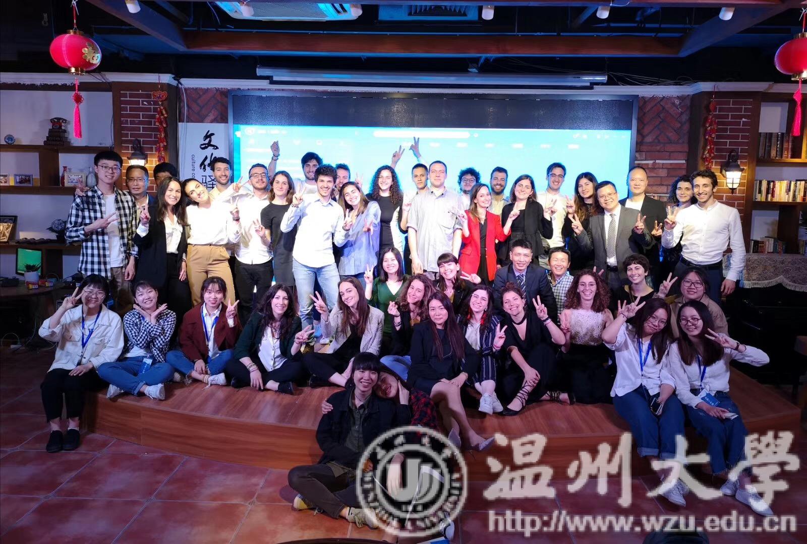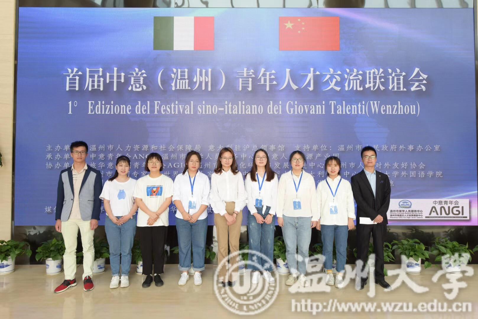 5月4日下午,首届中意(温州)青年人才交流联谊会在世界温州人家园举行。来自浙江大学、同济大学、意大利佛罗伦萨大学、意大利都灵大学等高校的32位意大利青年人才代表齐聚家园,与温州高校学生代表、政府部门负责人等进行交流对话。九色視頻 16级翻译专业6名同学应邀作为语言服务志愿者以及本土培养的大学生代表出席,参与此次交流会的各项议程。