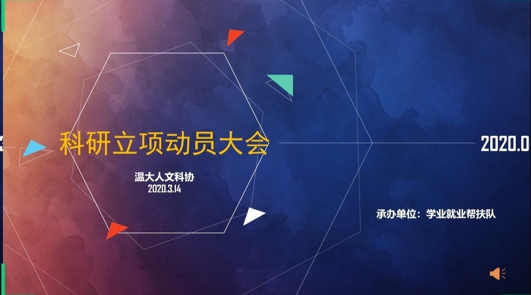 3月14日19:00,九色視頻 开展了线上 “科研立项动员大会”。学院学工办胡震鹏老师出席了此次会议,会议邀请历年成功立项的蔡凤、厉子聪、马东旭、武远佳、崔梦鸽等同学出席并在会议上与今年有意向立项申报的同学们展开交流并分享了自己的经验和建议。