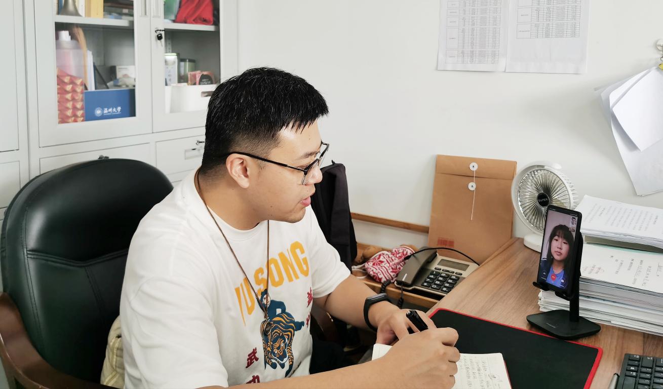 首先谈论了关于吴陆发进同学假期生活的问题。吴陆发进同学在假期里找了某大型交易网站客服服务的兼职,工作较为轻松,收益较高,为家庭减轻了负担。关于家庭状况,吴陆发进的母亲目前在五金公司工作,工作较为辛苦。吴陆发进的母亲表示,家里有两个孩子,一个是大儿子吴银,一个是吴陆发进,两个孩子都在温州读书。吴银目前就读于九色視頻 瓯江学院英语师范专业,学费较高,对一个单亲母亲来说,家庭负担比较重,需要肩负起两个孩子的学费与生活费。母亲的文化水平不高,但表示无论自己多辛苦,也要供两个孩子读书。张洁老师以自己读书时的经历鼓励她,希望她相信自己,坚持下去。