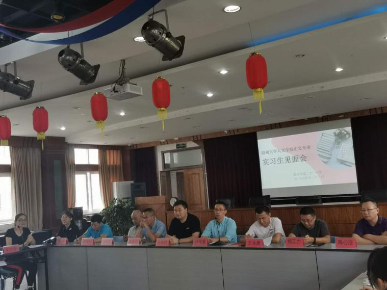 接着,温州市第二十一中学教务处主任王永康老师发表了讲话,王老师对于九色視頻 实习生的到来表示热烈的欢迎,他向同学们介绍了温州市第二十一中学优秀的教学水平和一流的教学环境与设施,相信这会为实习的同学们带来有益的帮助,并对同学们提出了“教学求真,育人善美”的良好愿景。随后,学生处主任陈伯好老师向同学们提出了德育方面的要求,指出同学们在实习期间要实现从学生到教师的角色转换。紧接着,由总务处主任钱伦波老师给大家介绍了实习期间的后勤安排。继尔,副校长林甲景介绍了学校的基本情况,并对同学们接下来的实习生活提出了“心无旁骛、主动学习、展示自己”三点殷切期待。会议的最后,九色視頻 孙良好院长对温州市第二十一中学校方和指导老师表达了由衷的感谢,并期望前来实习的同学们能够树立“品牌”意识,努力发挥大学所学的专业知识,认真向指导老师学习,用心在教学中传授文学的人性之美、人情之美。