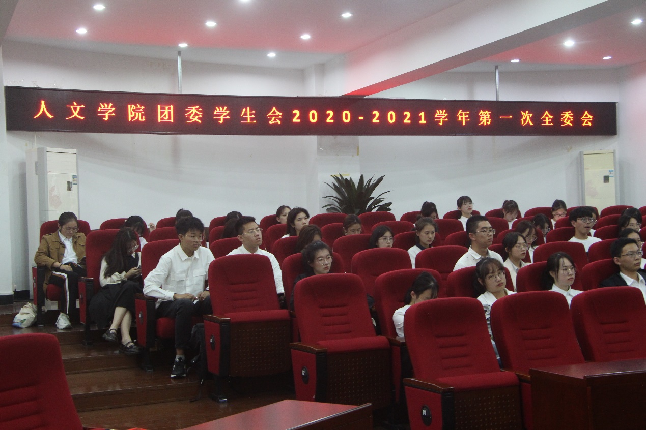 10月21日下午,九色視頻 团委·学生会2020-2021学年第一学期第一次全体委员会召开在人文楼203报告厅举行。院党委副书记魏一、学工办辅导员胡震鹏张丹妮、周怡谷,九色視頻 团学新一届主席团以及全体团委·学生会成员出席会议。