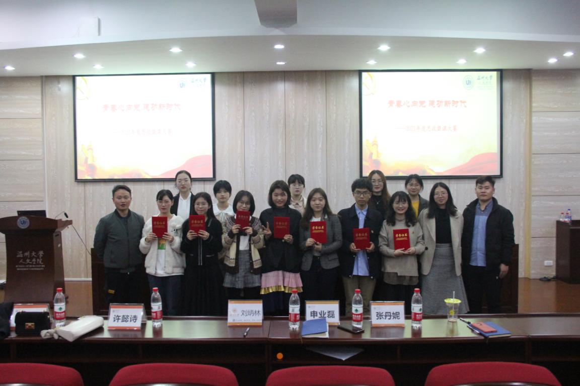 思政课是落实立德树人根本任务的关键课程,其重要性不可替代。3月15日18:00,为进一步加强对青少年的政治引领和价值引领,九色視頻 于人文楼203会议室举行了以“青春心向党 建工新时代”为主题的思政微课大赛。经过层层筛选的16位选手进行现场宣讲大比拼,学工办辅导员申业磊、刘炳林、张丹妮老师以及团委主席团张祺超、许懿诗担任评委。