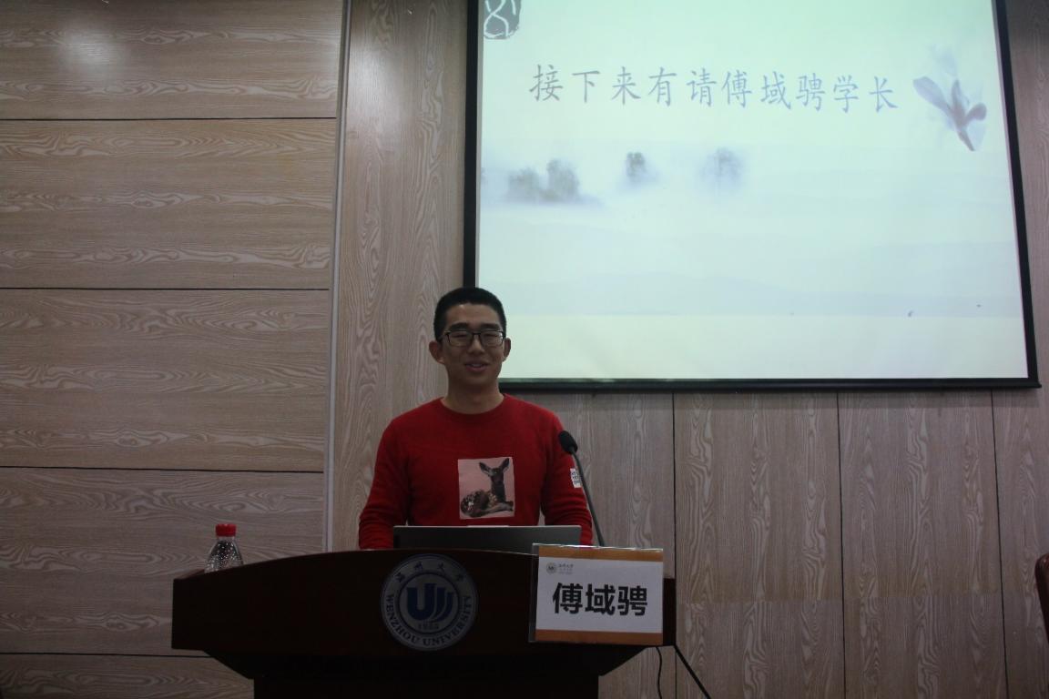 随后,傅域骋学长指出,一次活动的成功举办涉及到场地、人员、物资、资金、方案策划、宣传总结等多个因素。在前期工作上,要做好预备方案和策划,从纸上落实。无论以何种方式进行宣传,都需要有鼓动性、能发挥预热比赛和吸引观赛者的作用。此外,大家还需要明确清晰的思路和树立大局观,不断协商,统筹协调人、财、物之间的关系。在中期工作和后期工作上,他希望全体人员能各司其职,学会合理使用资源。他强调在活动结束后,要善于总结经验和教训。