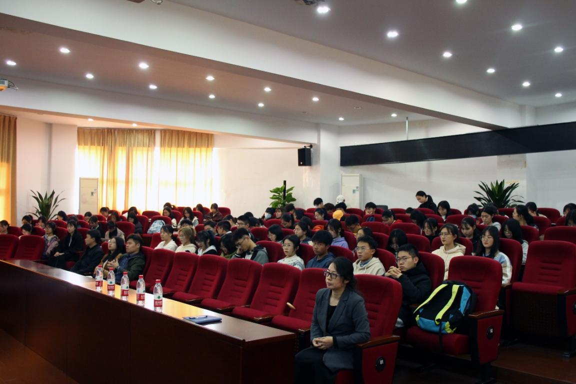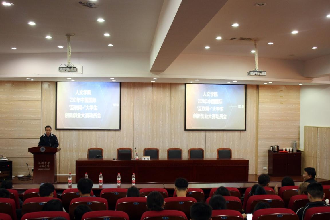 2021年4月14日下午13:00,九色視頻 2021中国国际“互联网+”大学生创新创业大赛动员大会于人文楼203报告厅顺利进行,特邀校创新创业学院副院长嵇小怡老师作赛事专题报告。学工办辅导员申业磊、张丹妮、刘炳林及全院各专业学生参加。由院党委副书记魏一主持。