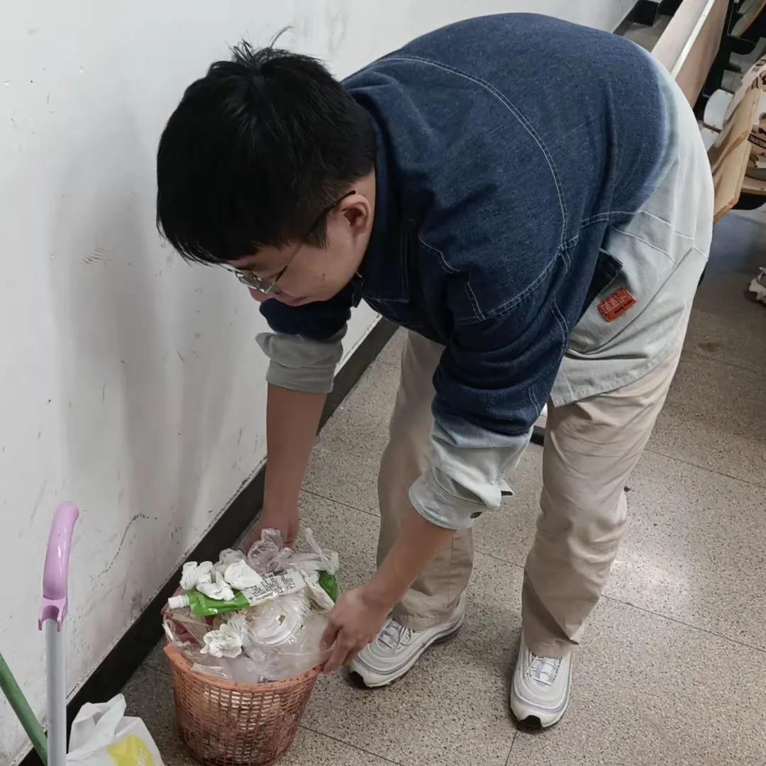 干净整齐的教室不仅能给同学带来上课的好心情,还能给老师带来舒适的授课体验。但是,同学们上课具有流动性,同一间教室会有不同班的同学上课,使得抽屉中落下的垃圾就成了“孤儿”,于是志愿者们又出动了。他们弯着腰,一手拿着垃圾袋,一手仔细清理抽屉里和地面上的垃圾,并定期去倒教室后面垃圾桶内的垃圾。顽皮出逃的垃圾一个个地都被抓回了家。清扫完垃圾,他们又去擦拭黑板。舞动着的板擦散落下飞扬的粉尘。然而,飞扬的不只是灰尘,更是志愿者们无私奉献的初心与从始至终的热忱。在挥洒的汗水下,一个整洁的教室也就“诞生”了 。志愿者不计个人得失,弘扬奉献精神,用自己的光热温暖了校园的每个角落,温暖了每个人的秋天,温暖了每个人的心。