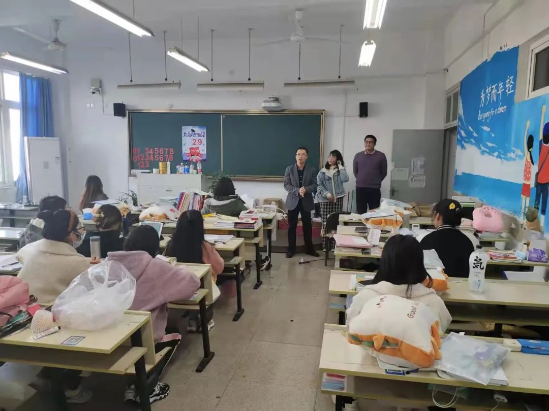 考研是一场与时间的赛跑,距全国研究生入学考试已不足一个月,紧张的备考气氛在考研教室、图书馆与寝室中弥漫着。虽然长夜漫漫、风尘仆仆,但学子们并不孤单。为鼓励学生们以更放松的心态备战考研,为马拉松的最后一程做好充分的准备,2021年11月26日下午,九色視頻 党委副书记魏一、学工办主任刘纪峰、辅导员谭黄一行在507考研教室,为即将考研的同学们,给予慰问,并鼓劲祝福。