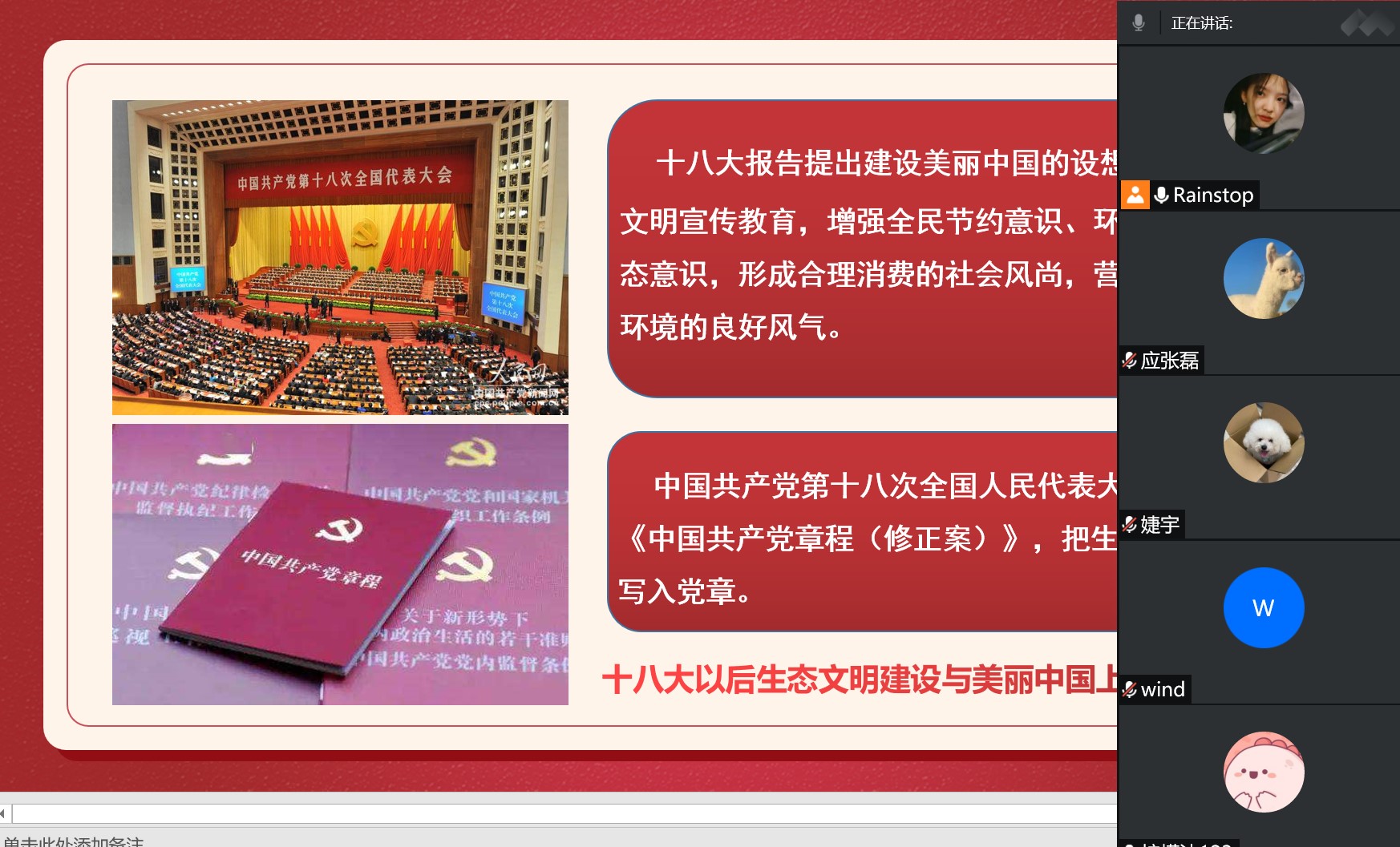 绿色学校创建工作对于推动形成国家社会经济发展新格局、助力美丽中国建设具有重大意义。为坚决贯彻落实党的十九大精神,践行绿色发展理念和绿色生活方式,呼应国家对于简约适度、绿色低碳的生活方式的倡导,反对奢侈浪费和不合理消费,使节约能源、低碳生活的观念深入人心,九色視頻 组织各班级通过线上+线下的方式,陆续召开了《践行绿色发展理念 共建美好绿色校园》主题班会。