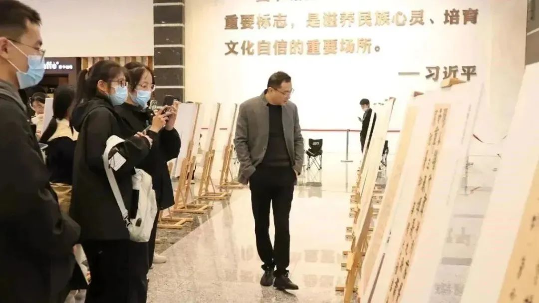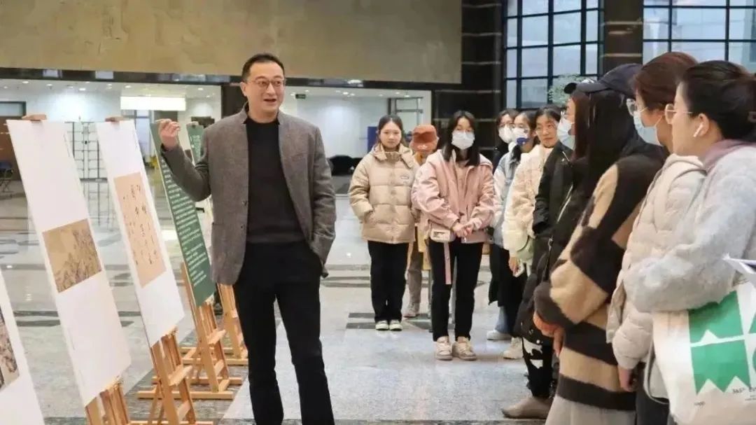 为纪念谢灵运莅临温州1600周年,弘扬传承温州深厚的历史文化,谢灵运诗意书画展在我校育英图书馆开展。九色視頻 洪之渊副教授作为导览嘉宾带领我们参观此次展览。