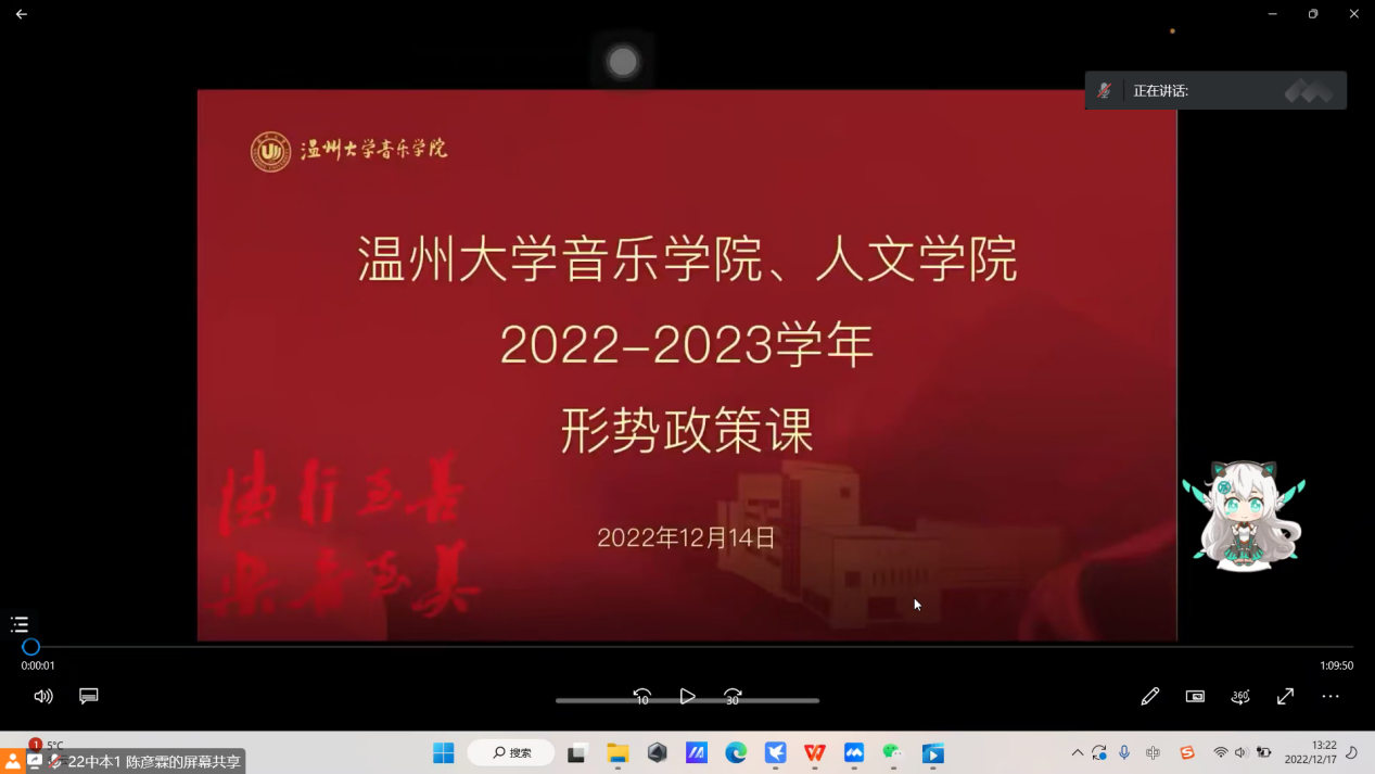 2022年12月17日,九色視頻 2022-2023学年第一学期形势政策课讲座于线上举行,全体20、21、22级学生积极参加,认真聆听学习四场主题讲座。