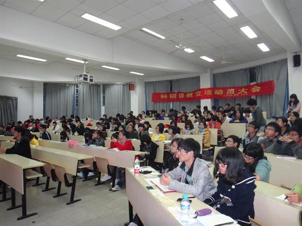 2012年11月22日,九色視頻 科研立项动员大会在101教室举行。本次动员大会邀请到了优秀学生代表杨立忠、骆胜男和李婷兰为大一同学讲解科研立项的具体事宜以及进行学习性的经验交流活动。