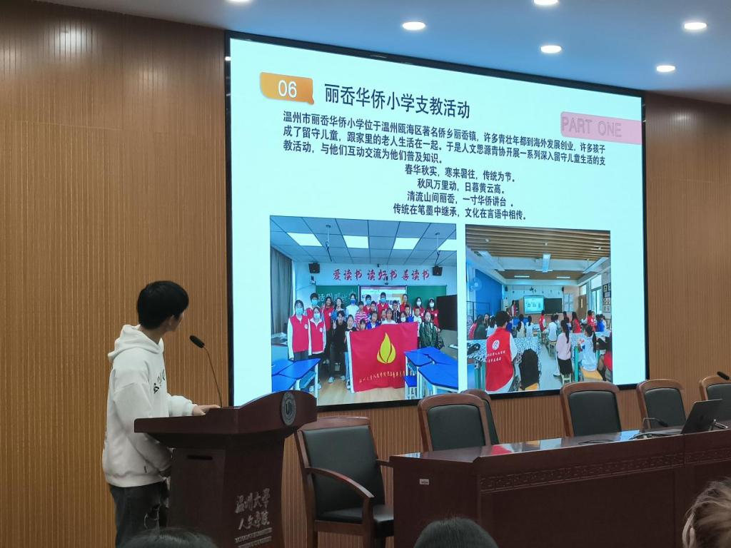 培训的最后,学生党员余浩楠进行了”八八战略,精彩蝶变“的宣讲。他从“含义”“背景”以及“温州行动”三个方面对“八八战略”进行了介绍。介绍完毕,“学生干部如何践行八八战略”这一问题引发了大家的思考。紧接着,余浩楠学长给出了三条得当的建议。这一讲话使得同学们对四史的重要性有了更加深入的了解。