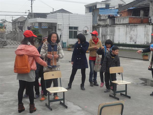 8时20分,大家到达了丽岙一小,小朋友们已经在校门口等待了,一看到我们的到来就纷纷迎了出来,拉着志愿者老师们进去。于是在简单的安排后,大家戴好志愿者帽子就去将桌子椅子搬到操场上来,小朋友们也帮助志愿者老师们做一些简单的搬运。此次兴趣班圣诞游园会活动主要分为了五个游戏点,有铁人三项、瞎子背瘸子、两人三足、抢凳子、亲密接触等。小朋友们在青协干事处领了记分卡之后就投入到了游戏之中,大家在各个游戏点穿梭,玩的不亦乐乎,冬天的寒冷似乎被小朋友们的热情给驱散了,在孩子们的身上有的只是快乐,寒冷退到了角落,学校的上空飘荡着小朋友们的笑声。并且,在神秘小礼物的“诱惑”下,小朋友们都十分的积极,都希望能够在游戏中独占鳌头,得到更多的积分。