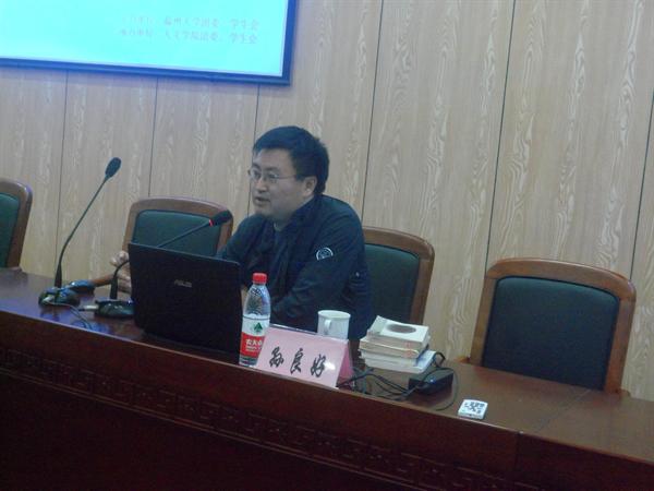 在全场的热烈掌声中,孙老师开始了精彩的讲座。首先,孙老师介绍最近学院举办的重要学术沙龙以扩展同学们的学术视野。接着孙老师罗列了一系列中国现当代文学史上的嘉兴、浙江乃至中国的作家,将余华与他们进行对比。最后,他通过分析余华写作对人性挖掘的深度、对现实的观照、写作的视角、叙述的方式以及作品的影响力等方式,进一步提出余华之于浙江是“文学浙江”的排头兵,之于中国是上世纪60年代的中国作家中的领军人物,之于世界是具备获诺贝尔文学奖实力的中国作家。整个教博气氛和谐,学生们认真听讲。