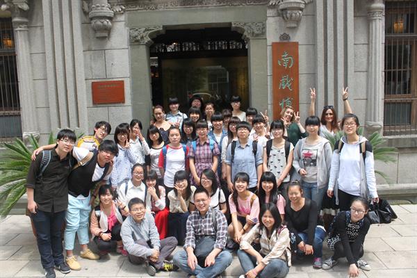 4月29日---考察第二天,同学们热情不减,当天的首站是夏鼐故居。夏鼐是新中国现代考古学的奠基人之一。在故居的一个小厅中我们观看了一个关于夏鼐的小短片,在影像中更加深刻得了解了夏鼐,他渊博的学识,广阔的见闻,严谨的治学无一不使我们深深折服。第二站我们来到了南戏博物馆。听馆内讲解员介绍,南戏是我国戏剧的最早成熟形式之一,又有温州杂剧、永嘉杂剧、鹘伶声嗽﹑南曲戏文等名称。在进门正大厅,我们通过视频欣赏了一小段南戏的表演,感叹于我国的戏剧魅力。而那些精美的戏服及生动的脸谱更是让我们喜不自禁,随着讲解员介绍,我们在这小小的一方馆内了解了许多平时都不会接触到的东西。南戏博物馆的旁边就是朱自清故居。进门,听工作人员讲它的建筑带有巴洛克风格,细观屋檐瓦墙,庭院植树,脑海中自动浮现各种学过的朱自清散文,不亦乐乎。最后我们一行人乘着轮渡出发前往考察的终点站—江心屿。江心屿是瓯江中的一座孤屿,素有“瓯江蓬莱”,“中国诗之岛,世界古航标”等美誉。下船登岛,老师先带我们到了江心寺,打趣让我们念那副“天下第一楹联”:云朝朝朝朝朝朝朝朝散,水长长长长长长长长消。嬉笑间也没有完全将它念下来的人。随后我们各自散开在江心屿游逛,江边的风是愉快的,我们一行人坐在草坪上聊天,拉上老师一起游戏。劈叉的擂台赛,老鹰捉小鸡,简简单单的游戏却让我们放松肆意大笑,抛下所有烦恼。回程途中巧遇湖边钓者正奋力捕获一条大鱼,周围观者甚众,欢呼感叹声一片,这又是一种意外的旅途收获。