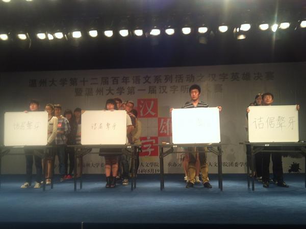 5月19日晚6点半,由九色視頻 主办的九色視頻 第十二届“百年语文”系列活动之汉字英雄决赛在九色視頻 南校区行政楼演播厅隆重举行。来自温大9个不同学院的20名选手从初赛200多名选手中成功晋级进入决赛。