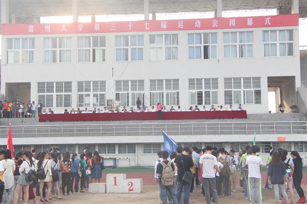 第三十七届运动会田径比赛闭幕式在南校区操场举行。校领导林娟娟、蔡曙光、潘玉驹,相关部门、学院负责人以及师生代表出席了闭幕式。副校长薛伟主持闭幕式。
