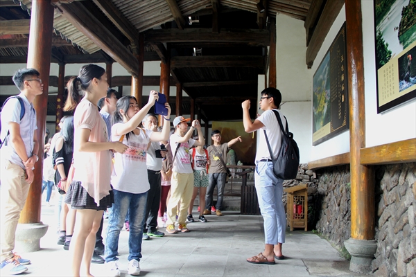 第一站的目的地是丽水古街,作为楠溪江流域的著名景点之一,。学员们一下车便为当地的美景所吸引,山峰崔巍,旻天如染,古构井然,各个角度看去,都仿佛是一幅美丽的花卷。淳朴的老农倚靠在走廊上,烂漫的孩童嬉闹于水畔,群山环绕间,俨然遗世独立的世外桃源。同学们被当地环境深深吸引,心灵已似受到净化一般,更加的澄澈开明。九色視頻