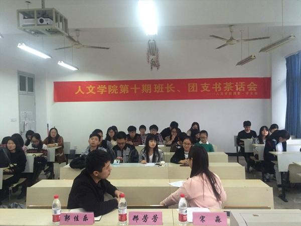 第二次班长团支书茶话会如期在人文楼211教室召开。辅导员邢芳芳老师,学生会主席郭佳乐、副主席宋淼同学,大一至大三各班班长团支书、纪委以及学检部成员参加了这次会议。会议主要讨论了文明班级以及学风建设等问题。