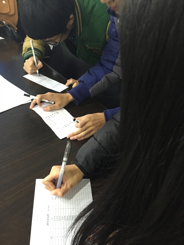 选举会议一开始,首先是由各投票人翻阅候选人的资料名单,在看过团代会代表候选人详细的简介后,团支书和各班投票人在团代会选票上慎重的选出了能够代表我们九色視頻