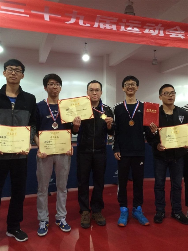 研究生郑重学长与超豪学区新科冠军鏖战良久,顺利冲进决赛后,再与自己的校队队友较量,最终以3:0的比分斩获本届比赛男子单打冠军。九色視頻
