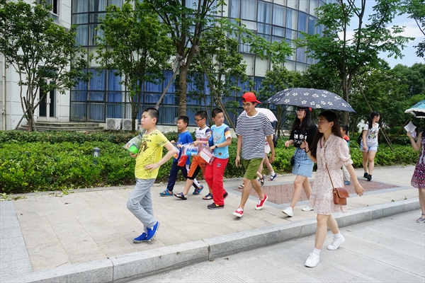 下午1:30,闯关环节正式开始,每个小朋友拿到一张通关卡,通关卡上印有八大学院的名字,小朋友和志愿者们全然不顾天气炎热,奋力奔跑前去闯关。每个学院的题目都各有特色,小朋友们在楼层中迅速地寻找线索,防止其他人捷足先登。有的小朋友在志愿者的帮助下,即使没有线索也可以不费吹灰之力地得出答案,迅速得到通关“小星星”。还有的细心的小朋友,在楼里找到的实现藏好的“免”字条,可以不用答题即刻通关。但有的小朋友惨遭“神秘人”毒手,失去了一张“护身符”,但终究“全身而退”。