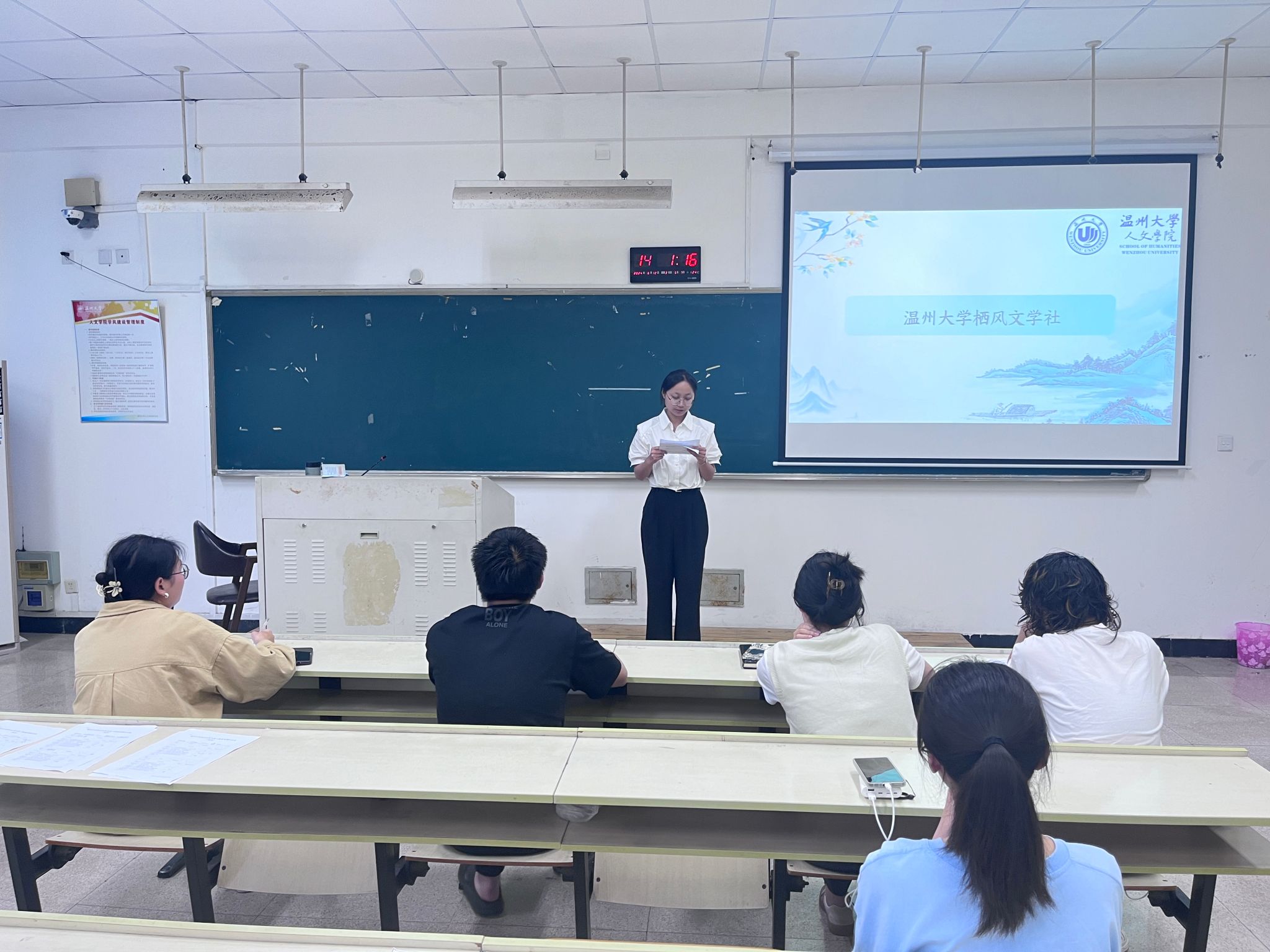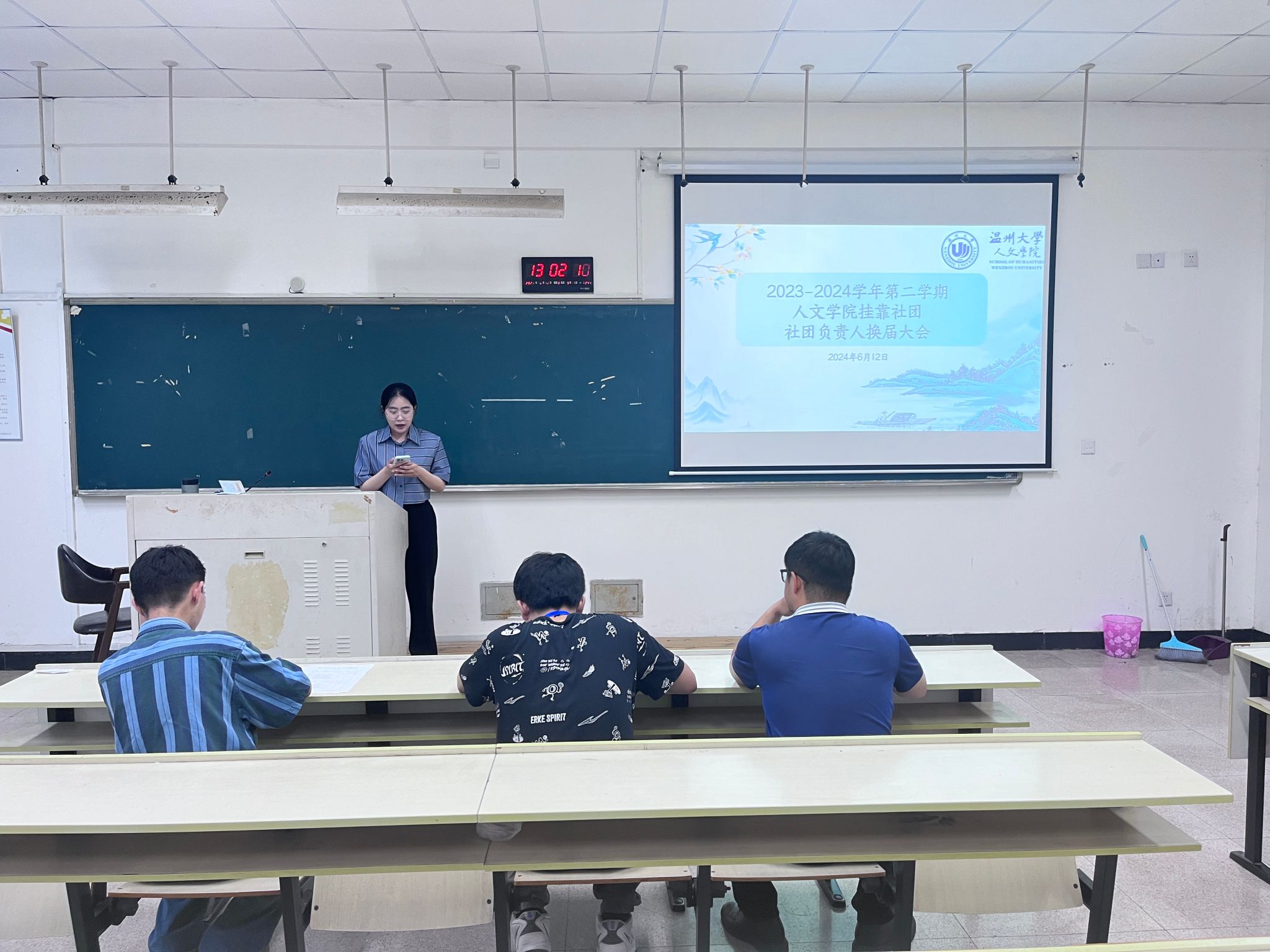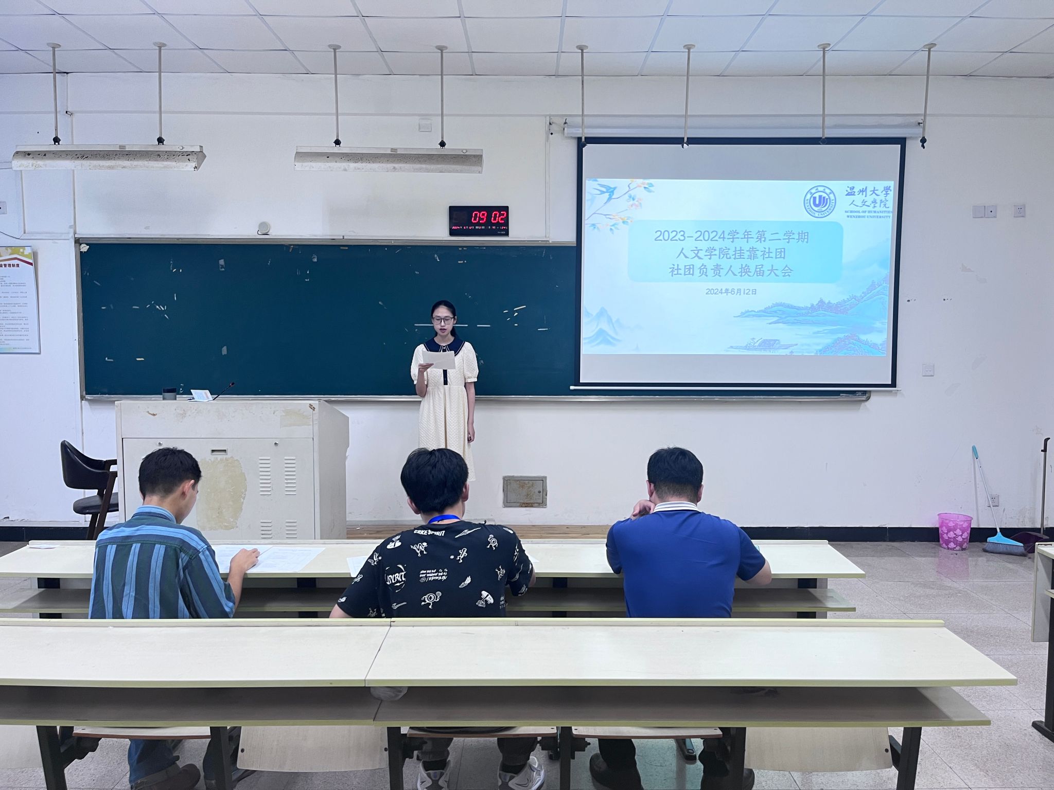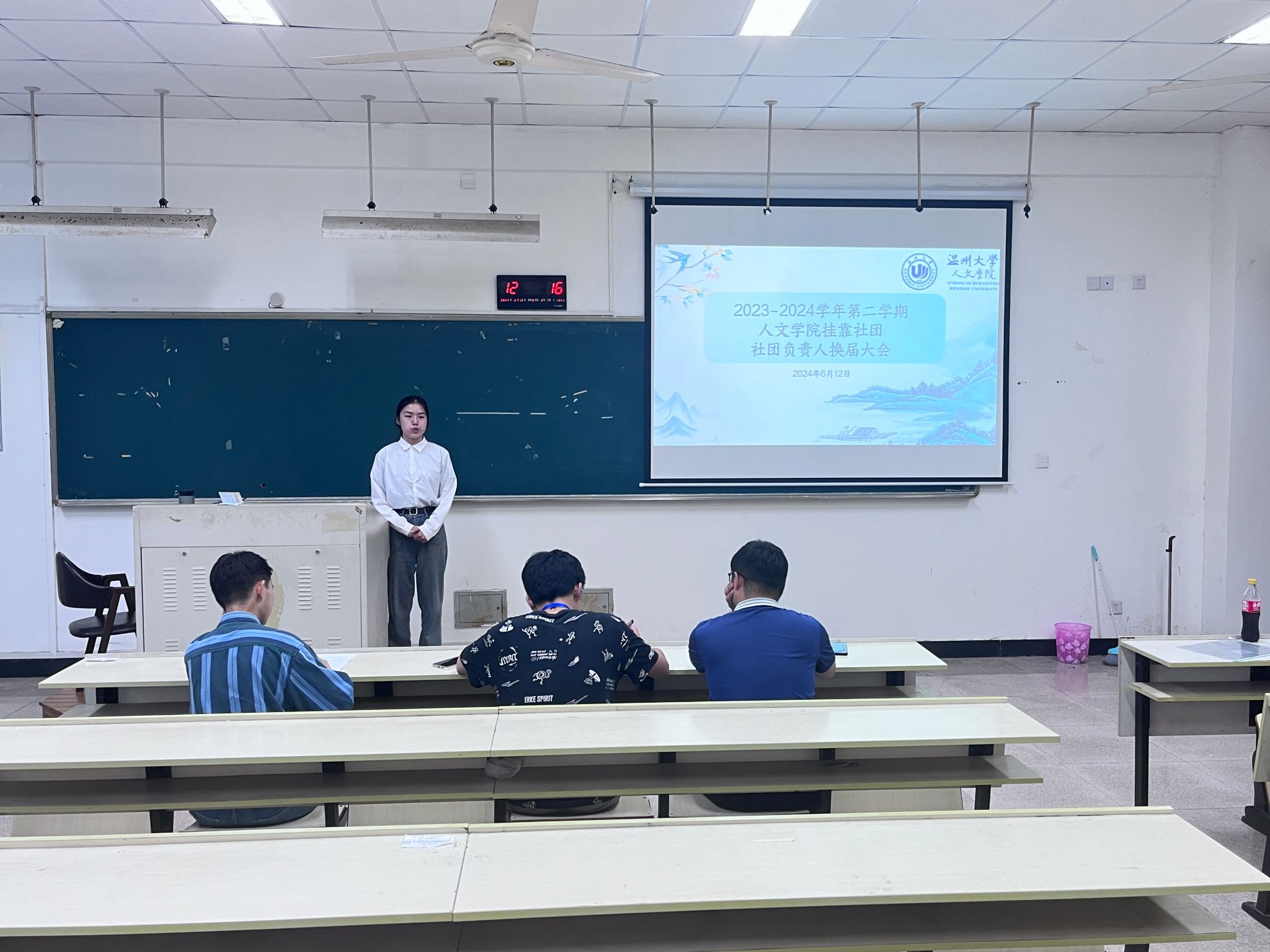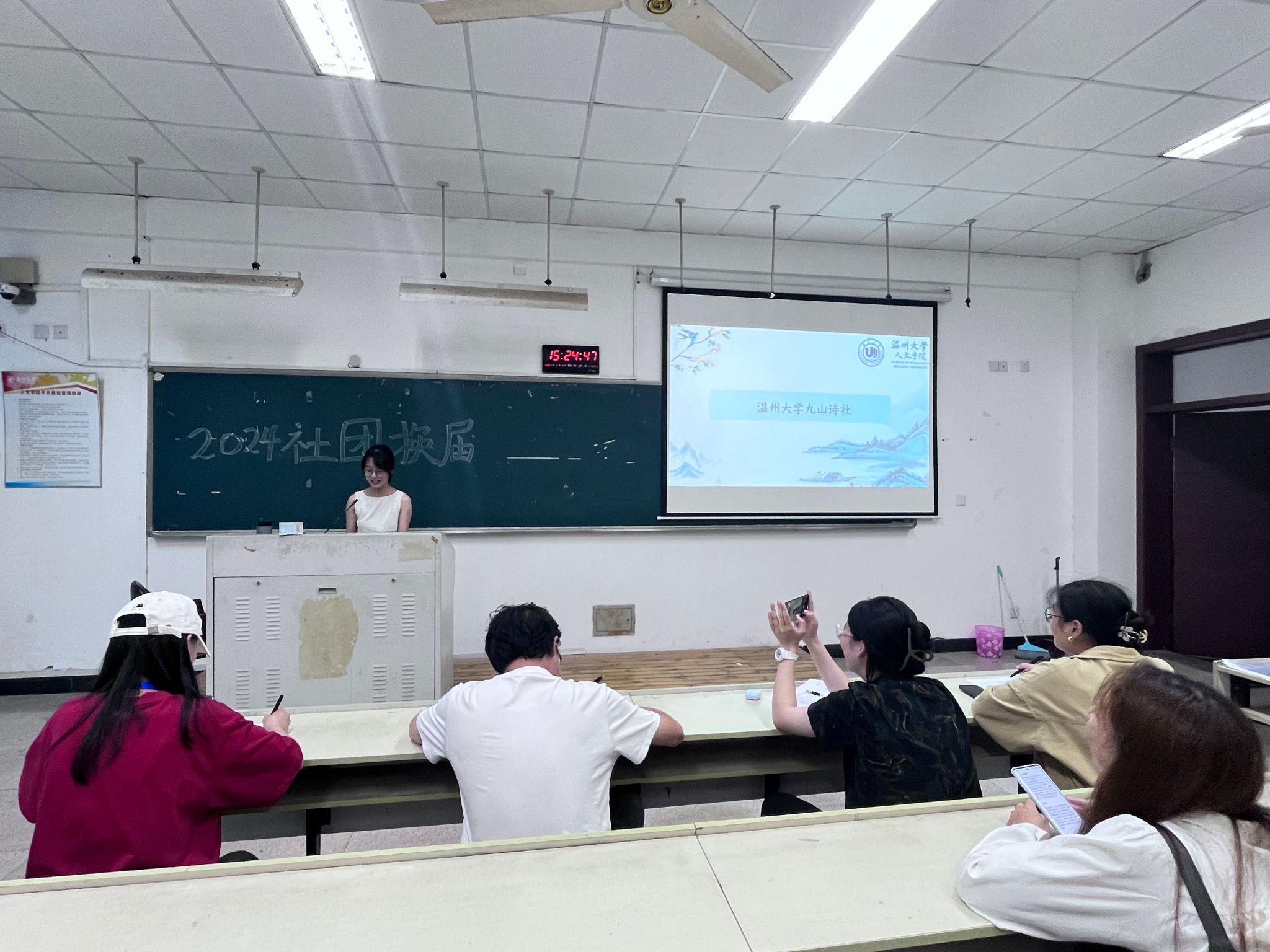 2023-2024学年第二学期九色視頻 挂靠社团社团负责人换届选举大会于2024年6月12日在人文楼201教室举行,九色視頻 文字作坊社、九色視頻 瓯玉汉服社、九色視頻 栖凤文学社、九色視頻 朗诵协会、九色視頻 红楼戏曲社、九色視頻 民俗协会、九色視頻 九山诗社、九色視頻 露浓剧社依次竞选。