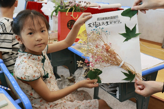 文海拾贝拼新意,诗山探宝筑奇章。随着课程铃声的响起,一场关于诗词的奇妙之旅悄然开启。在队员们的引导下,孩子们运用比喻、拟人等修辞手法,充分发挥想象力和创造力,通过拼贴的方式,将散落的词语精心编织成一首首生动的诗句,让传统文化以全新的面貌展现在大家面前。一幅幅独特的拼贴诗词作品,不仅是孩子们想象力的结晶,更是对中华诗词文化的一次深情致敬。