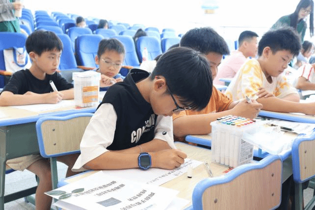 诗意盎然绘风月,横竖撇捺摹苍穹。队员们对汉字结构的讲解让孩子们领略了汉字的无限魅力,队员们以古代庄重典雅的建筑为喻,深入浅出地讲解了汉字结构的均衡之美与对称之美。孩子们在惊叹于汉字之美的同时,也纷纷拿起笔,以最端正的字体抄写自己创作的拼贴诗。一笔一划间,不仅是对汉字书写的练习,更是对传统文化的传承与致敬。