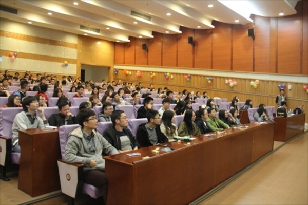 、建工学院、体育学院、音乐学院、机电学院等各学院的研究生、本科生参加了本次联谊活动,报告厅会场座无虚席。