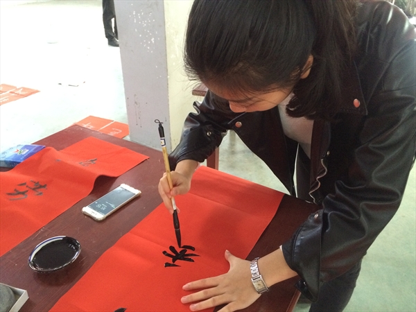 在当地村官的带领下,大家一行人来到了夏林头文化礼堂,拉好横幅并进行简单的介绍之后,参与此次暖冬行动的同学们安置好随身携带的书法工具,开始书写春联,村民们纷纷主动上前帮忙。“绿竹别其三分景,红梅正报万家春。”“民安国泰逢盛世,风调雨顺颂华年。”一幅幅字迹优美的春联得到了村民们的赞美,九色視頻