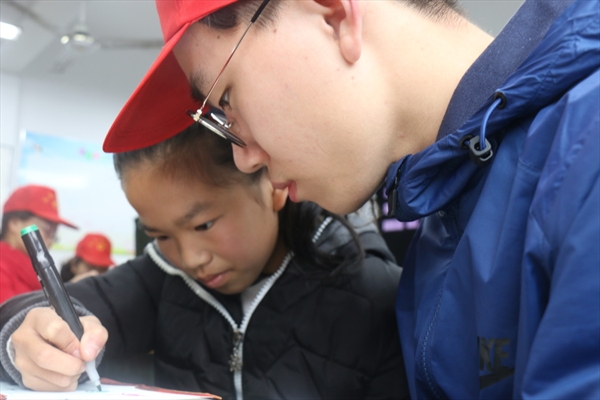 3月11日上午7点40志愿者们集合在高教园区始发站前的公交站点乘坐公交车前往丽岙一小。在到达活动地点之后,孩子们已经在学校游戏,志愿者进行了教室的布置,引领着孩子们进入活动教室。主持人在介绍完活动意义和具体安排,对志愿者和孩子们分组完毕后,发下垃圾袋,要求志愿者带着孩子们在校园内进行清理,并注意孩子们的安全。孩子们就匆忙跑向自己想要去的场地完成自己的任务,孩子们在认真清理着自己场地上的垃圾,还给自己的校园一份整洁。30分钟后孩子们再次在原来的地点集合,并拿出自己的垃圾袋,整理出在校园里捡到的落叶加上我们准备的叶子,在每个小朋友拿到足够的叶子后,发下白纸,双面胶和彩笔等,希望孩子们能够开动脑筋制作树叶贴画,刚开始孩子们对于如何制作毫无头绪。在志愿者的帮助下,顺利打开思路动手制作贴画。缤纷的落叶在孩子们的手下变换成海底的鱼、龟、海草,天空的云朵、飞燕。自然万物都通过落叶的形象生动的展示在原本空白的画纸上,相似的落叶展现出不同的姿态,焕发不一样的生机,大概完成了落叶的剪贴工作后小朋友们拿起彩笔进行加工,使画面更加精致。完成了自己的作品后,孩子们自豪地拿着自己的作品进行照相。11点所有孩子们完成了自己的制作,志愿者和孩子们最后一次大合照之后。等着孩子们的家长们接走自己的孩子们后,志愿者清理了活动场地,便返回了。