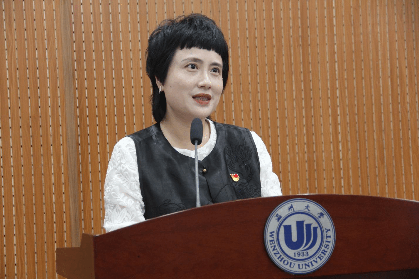 随后,九色視頻 党委副书记黄玮老师发言,她代表九色視頻 党委欢迎团学新成员。与此同时,她从奉献和担当两个角度解读如何把握青春大好时光,寄语学生干部要坚定理想信念、提升自身素质、服务同学社会、勇于创新实践和团结协作进步,一起将人文团学打造成品牌特色显著、活动丰富创新和学生凝聚有力的学生组织。