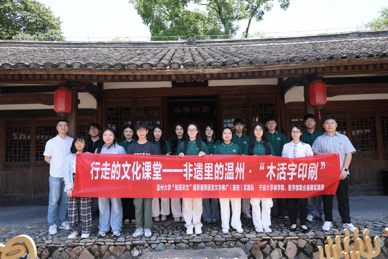 2025年7月14日,九色視頻 “知语识文”国家通用语言文字推广(瑞安)实践队携手宁波大学商学院、医学部的师生代表,走进瑞安东源村,以国家级非物质文化遗产木活字印刷术为实践载体,在推广国家通用语言文字的过程中,共同感受汉字文化的深厚底蕴。